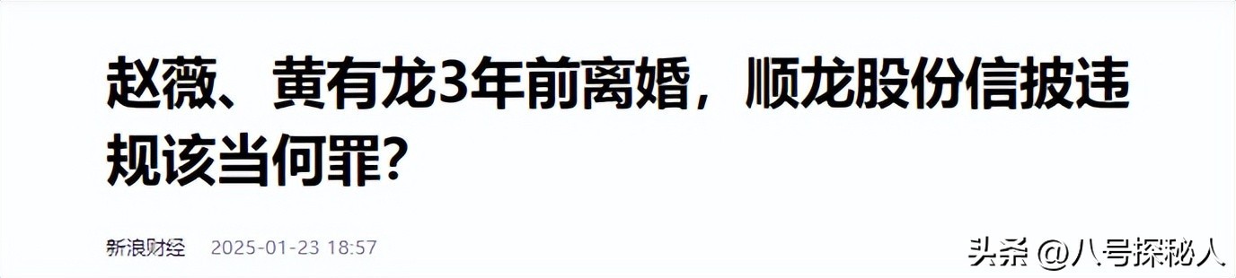 新浪财经——赵薇、黄有龙3年前离婚,顺龙股份信披违规该当何罪?