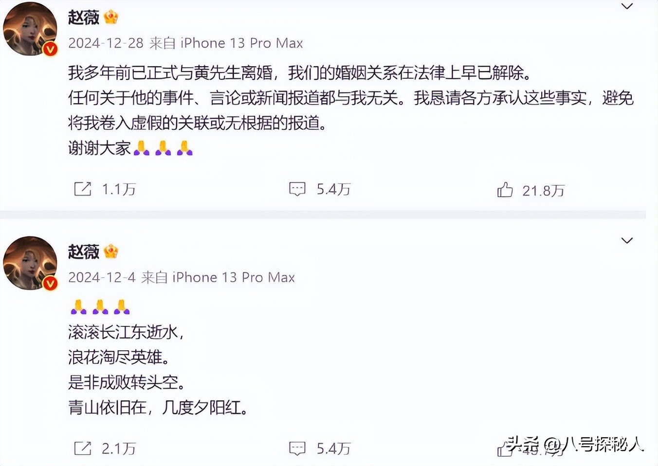 这两条动态在网上炸开了锅,网友们纷纷猜测赵薇这到底啥意思。