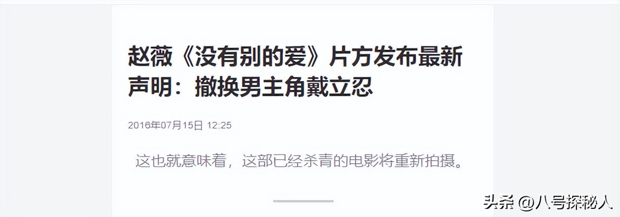 界面新闻——赵薇《没有别的爱》片方发布最新声明:撤换男主角戴立忍