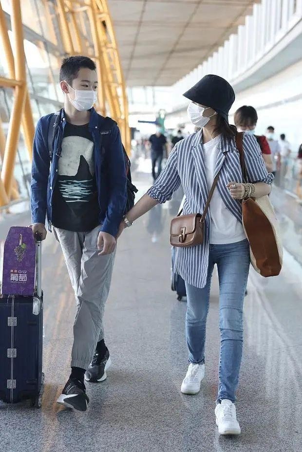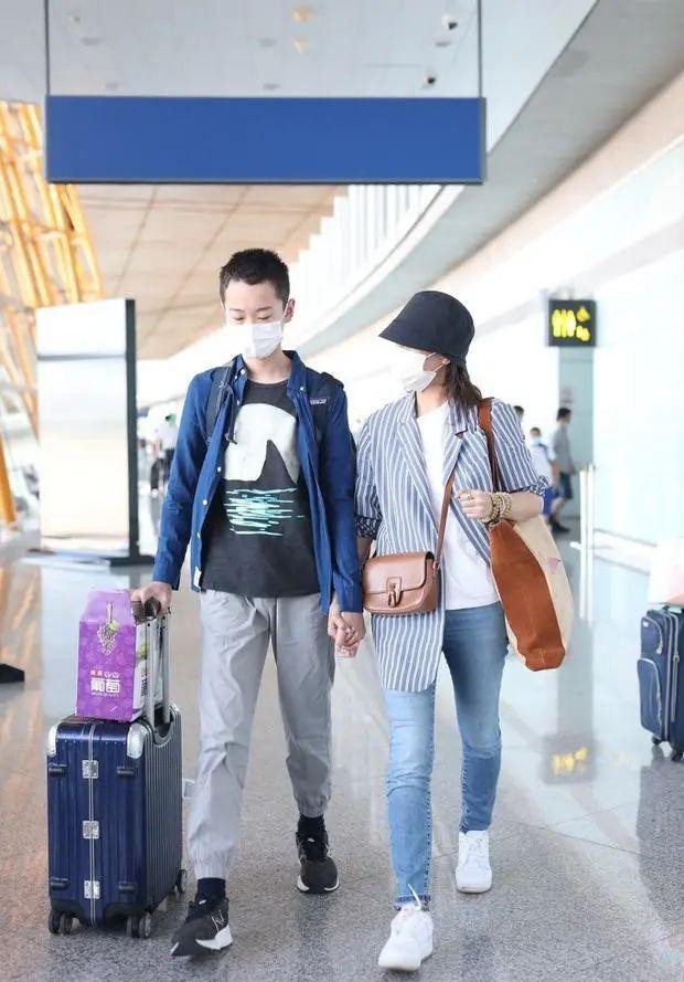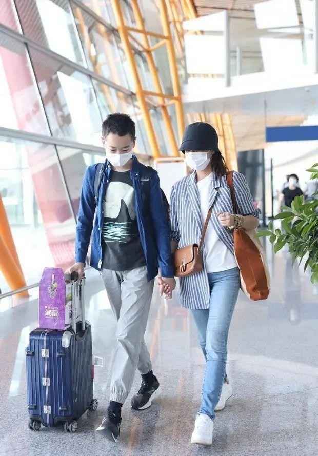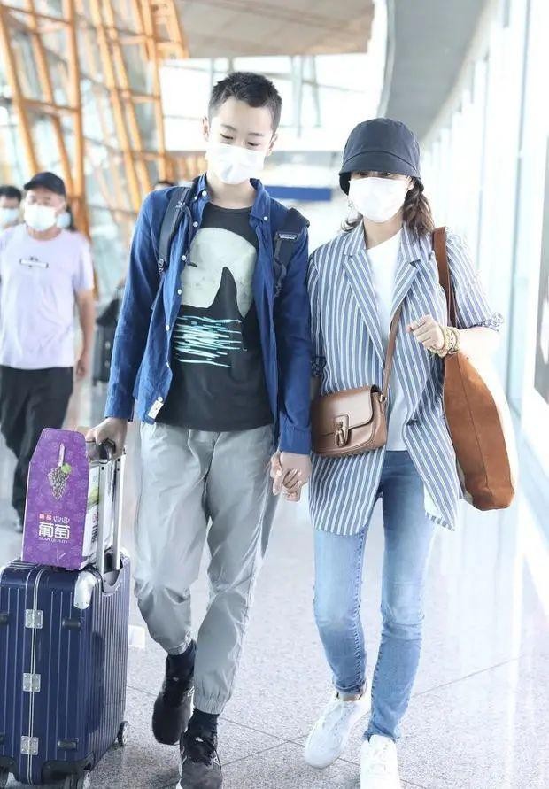 海清儿子罕见现身机场!14岁身高超过妈妈,完美遗传了爸妈的优点