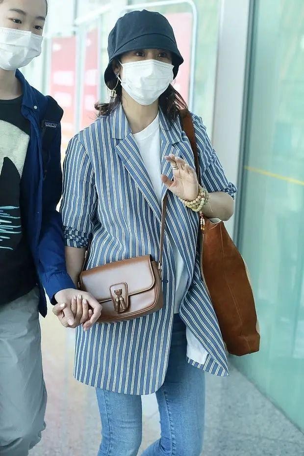 海清作为一位实力派女明星,已经许多年没见她儿子露面了,没想到一下子都这么高了,性感给人的感觉也很好,丝毫没有青春期男孩的浮躁,反而显得低调谦和。海清这次打扮也很舒适,条纹西装里面配一件白T恤,这样的穿搭很适合早春季节,早晚把西装穿上,气温升高的时候还可以单独穿,同时也有非常棒的减龄效果,视觉看上去年轻不少。