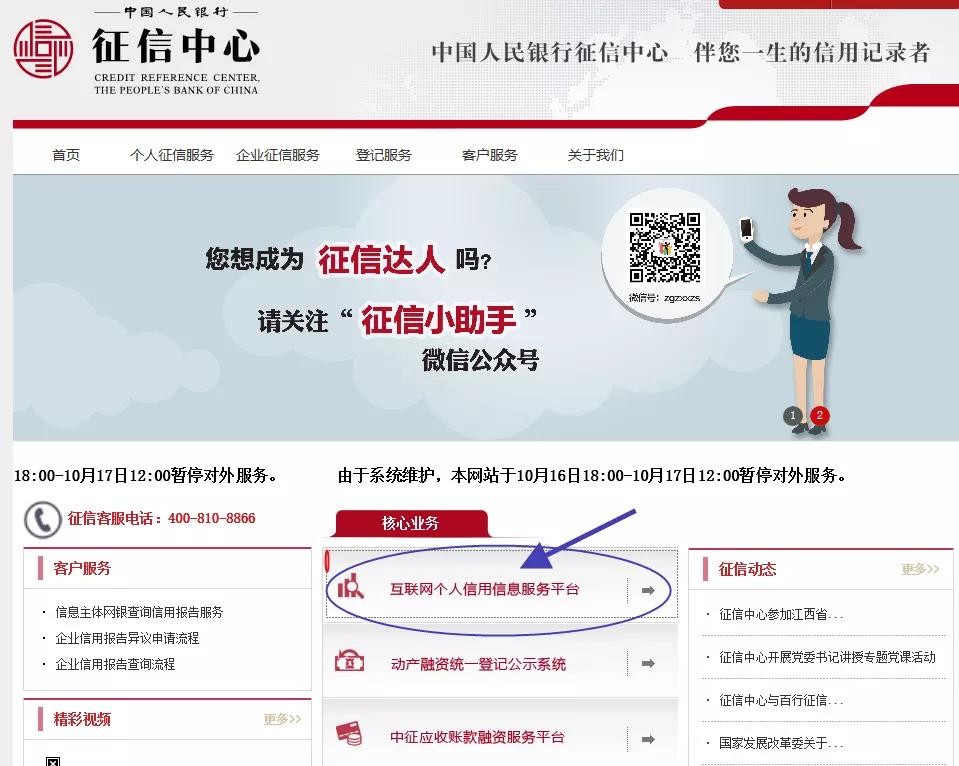 登陆中国人民银行官网,找到征信中心的个人信用信息服务平台(