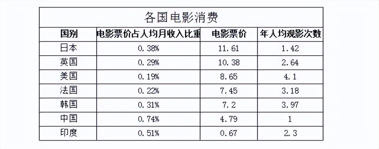 一些国家的电影消费数据