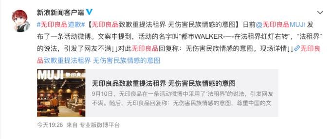 重提法租界,无印良品道歉:取消相关活动,无伤害民族情感的意图