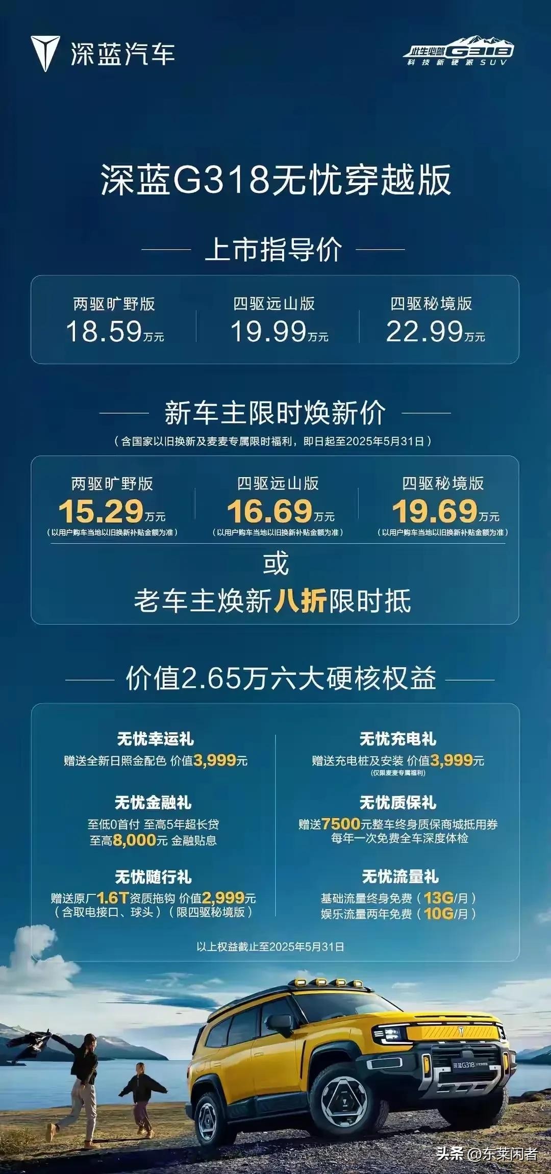 汽车圈正在上演一场史诗级降维打击!当合资品牌还在拿"伪越野"割韭菜时,深蓝G318直接带着「全场景王炸配置」杀疯了!15.29万起的价格,却塞进百万豪车才有的黑科技,这哪是卖车,分明是来颠覆行业规则的!