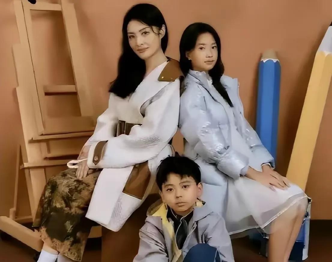周涛与子女携手拍摄大片,她身穿羊羔绒大衣展现温柔魅力,儿子则以卫衣套装展现帅气风采。最让人惊喜的是15岁的女儿,身着纱裙,如同周涛的翻版,基因显然非常强大。