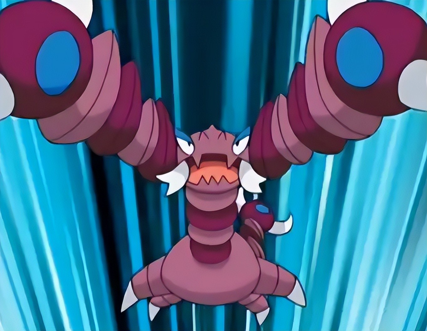 木春的第二只宝可梦就是龙王蝎了,龙王蝎嘛,,也是个外强中干的角色,所以木春的队伍里其实真要说的话要不是《传说 阿尔宙斯》里的对战机制不同,不然实力还真的会很一般,龙王蝎是那种外表看起来很猛但实际上输出不咋地的存在,基础输出不高但是有着不错的防御,速度也比较尴尬,问题是龙王蝎的属性组合和坦克臭鼬是一样的,所以这两只定位上其实也存在一定的竞争关系,木春的龙王蝎配招为毒液冲击+雷电芽+碎岩+冰冻牙,也是四攻。
