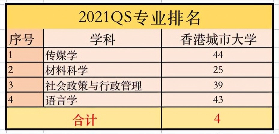 在2021年QS世界大学学科排名中,城大位列前50的专业有4个,分别是: