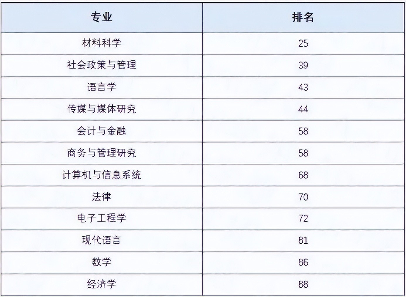 排名前100的有(2021年度QS世界大学学科排名):