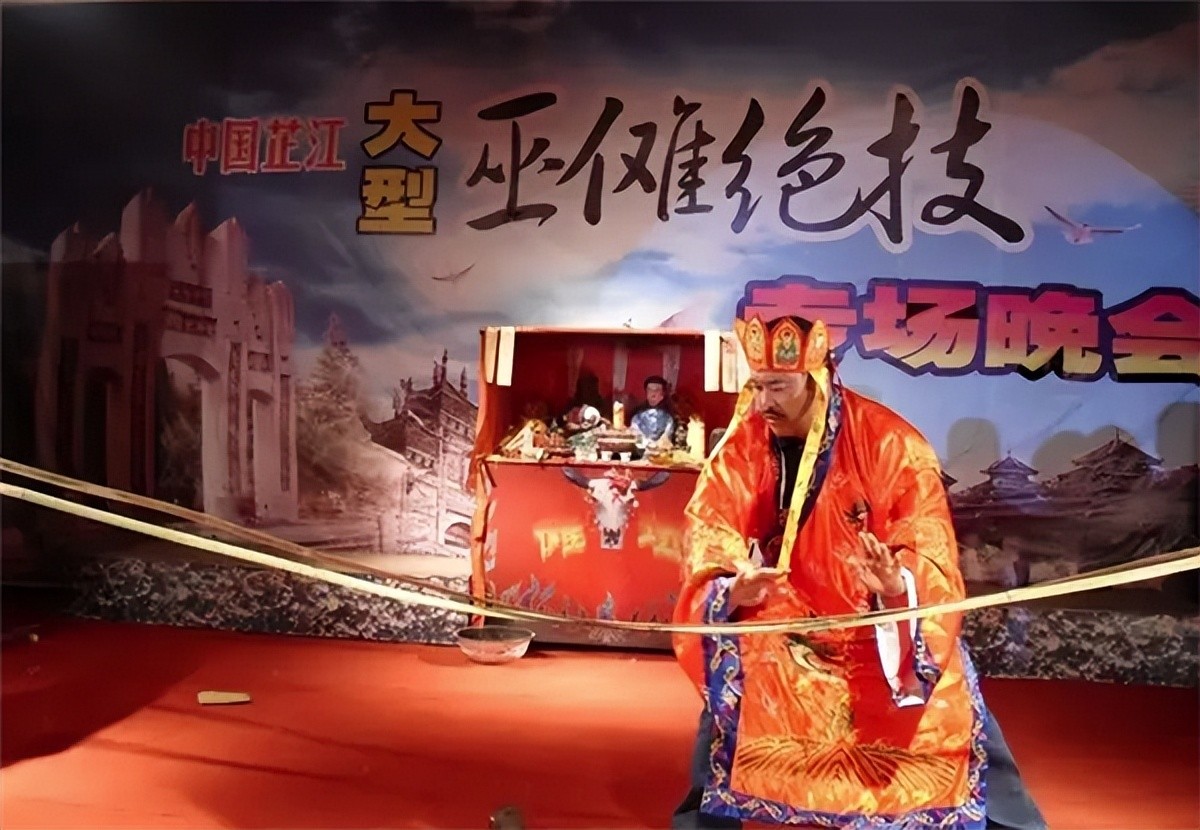 这一幕实在是叫人叹为观止!然而,当这场赶尸术结束后,田铁武却表示,这只是巫傩绝技表演,身后操纵的并不是真正的尸体。对于这么做的原因,田铁武是这么说的:我只能用我学到的巫傩绝技来表演,但是赶尸这项手艺真的无法用于展示。
