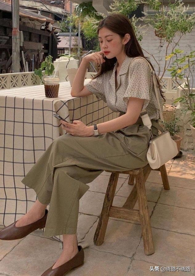 ③老花衬衣+棉质阔腿裤