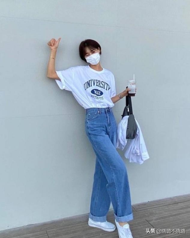 纯色T恤虽然干净,但却多了一丝单一,所以与阔腿裤搭配大家最好选择印花T恤。字母印花T恤风格简约不失特色,略微宽松的版型更易打造出慵懒风格,同时还衬得女性身材越发娇小。而我们的水洗牛仔阔腿裤颜色清新又淡雅,与字母T恤搭配起来效果更是极简又有格调。