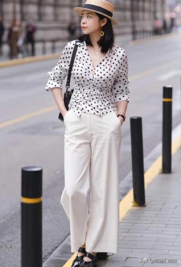 ②波点衬衣+棉麻阔腿裤