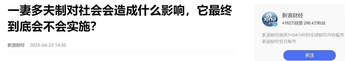 【1】一妻多夫制对社会会造成什么影响,它最终到底会不会实施?——新浪财经