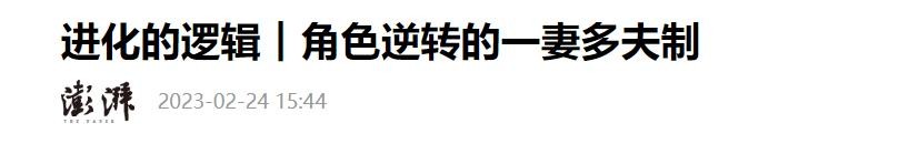 【2】进化的逻辑︱角色逆转的一妻多夫制——澎湃新闻