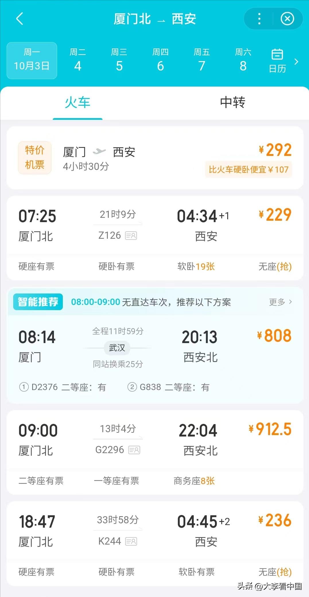 最后来看看K244次列车的票价情况吧,从厦门北至西安,全程票价229块钱,硬卧票价389块钱,软卧票价613块钱,相对于厦门至西安的高铁车次近千块钱的票价,K244的票价是非常有吸引力的,卧铺票也要比高铁便宜很多,不赶时间的话完全可以选择这样厦门北至西安的K244次列车去往西安。
