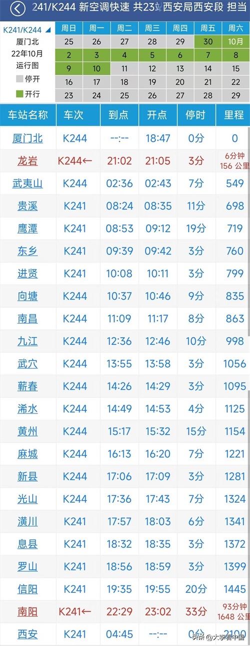 K244次列车运行时刻表