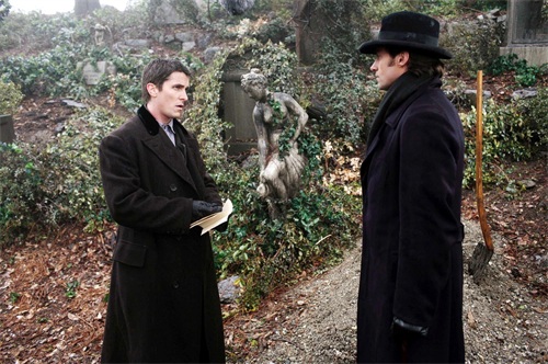 但这些秘密却又隐藏了更大的秘密:安吉尔的机器会将复制与正品随机放置。也就是说,安吉尔并不知道他今天会是跌入水中淹死的那个,还是从另一边出现、接受观众欢呼的那个。换句话说,每天晚上安吉尔都是抱着必死的决心踏进机械,而且也一定会「杀死」一个自己。