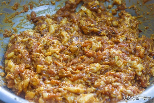 3.白糖50克,胡椒粉20克,料酒30克去腥,啤酒半罐,老抽10克调色,搅拌至肉馅把调汁全部吸收,放入适量的土豆淀粉,再加入辣椒酱30克,搅拌至肉馅起筋腌制1个小时。