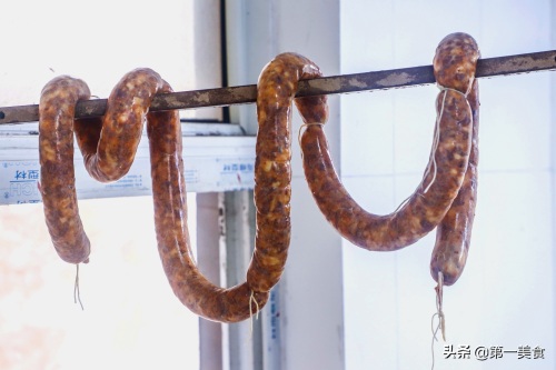 冬季温度比较低,灌好的腊肠放在阴凉处晾干即可。但是春季温度逐渐升高,腊肠晾干水气之后,需要煮熟或者蒸熟、晾凉,用保鲜膜密封,放入冰箱中冷藏,防止腊肠霉变。