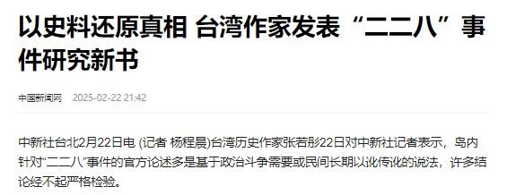 张若彤前几天(2月22日)刚开了新书《如是228》发布会,他可是实打实地说了:岛内官方对"二二八"的叙述,大多是政治需要或者以讹传讹,经不起推敲!