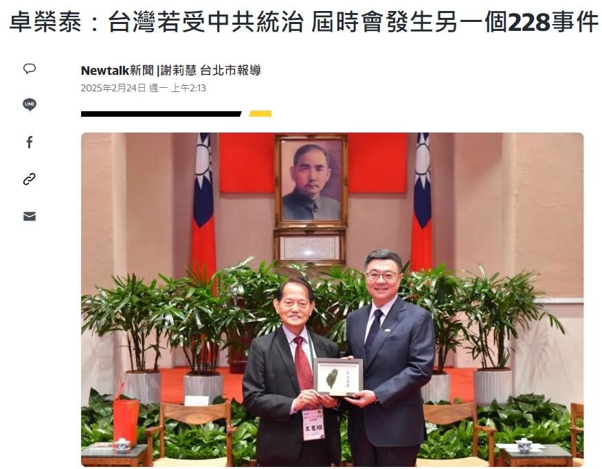 结果呢?“卓荣泰们”对这些研究视而不见,照样选择性解读历史,非要把二二八塑造成抗争"外来政权"的标志,给"台独"理论加料。