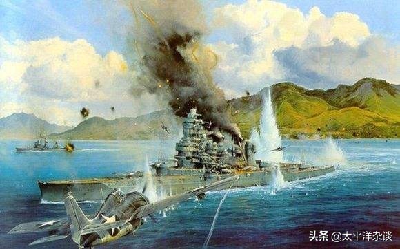 已经遭到重创的”比睿“号,”比睿“号的沉没是日军于此战中的最大损失