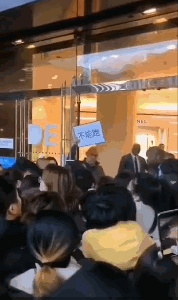 其中在LV专柜门口,排着的队伍满满当当,一眼都望不到尽头。想进店门先排几个小时的队伍再说。