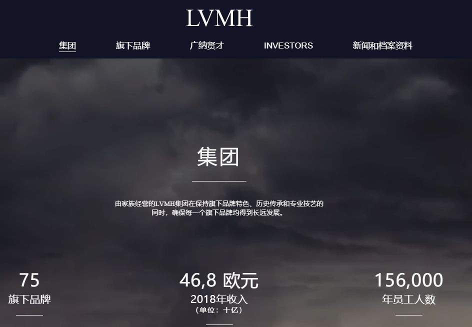 官网显示,LVMH集团是全球领先的奢侈品集团,汇集了75个知名品牌,2018年销售收入攀升了10%,销售额达到468亿欧元。