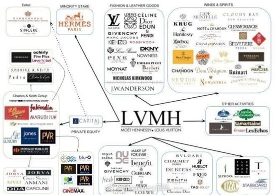 举个例子,单单时装与皮具,LV集团还拥有芬迪,唐娜·凯伦,罗伟,Marc Jacobs的,席琳,高田贤三,纪梵希和托马斯粉红等。