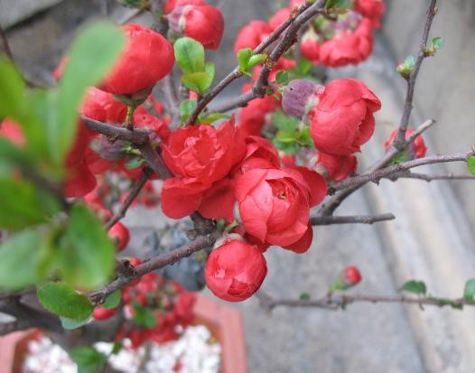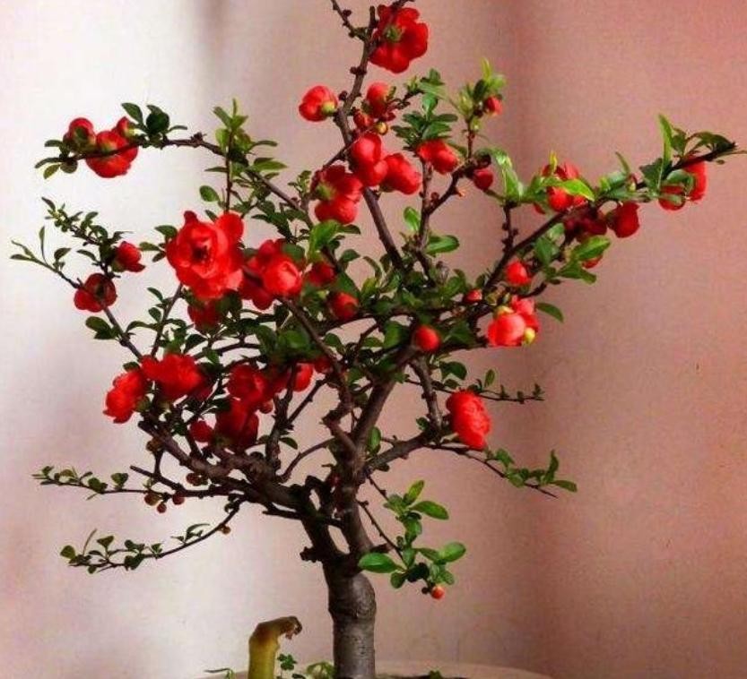 海棠花开花鲜红色,非常鲜艳漂亮。就是喜欢光照充足,喜欢温暖湿润的生长环境,有一些耐阴,而且较为耐寒,不喜高温,这样才能让它长势茂盛,开花更多。