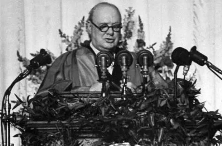 1946年3月,时任英国首相温斯顿:丘吉尔在美国富尔顿发表的反苏、反共演说。又称铁幕演说。丘吉尔在演说中公开攻击苏联“扩张”,宣称“从波罗的海的什切青到亚得里亚海边的里雅斯特,一幅横贯欧洲大陆的铁幕已经降落下来”,苏联对“铁幕"以东的中欧、东欧国家进行日益增强的高压控制。而随后美国总统杜鲁门发表的国情咨文中的有关内容就标志着西方国家正式开始推行“冷战”政策。