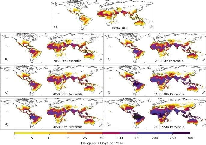 新的研究指出,到2100年,印度、阿拉伯半岛和撒哈拉以南非洲在内的热带和亚热带地区,将在大多数日子里经历危险的高温。与此同时,在世界中纬度地区至少每年都会经历强烈的热浪。例如,在美国芝加哥市,研究人员预测到本世纪末危险的热浪将增加16倍。所以极其危险。