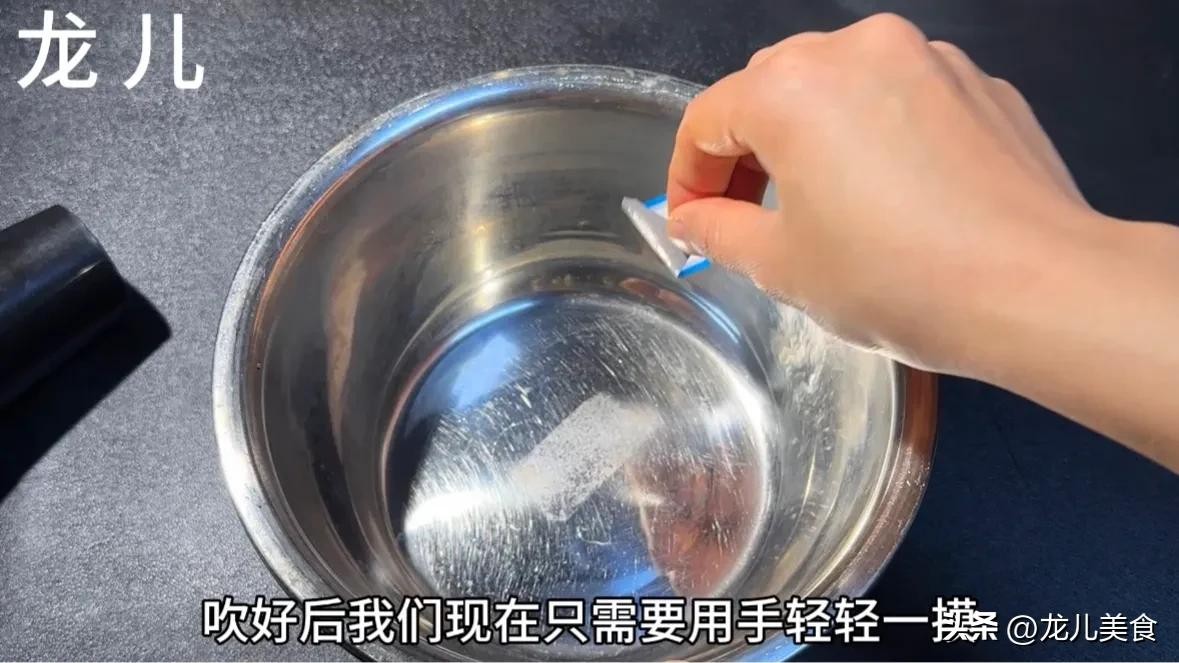 其实不锈钢盆子里面的这种标签接下来是最简单快速的,我们只需要准备家里面平时用来吹头发的电吹风,把风开到热风温度越高越好,然后对准盆底的标签吹上十几秒钟。