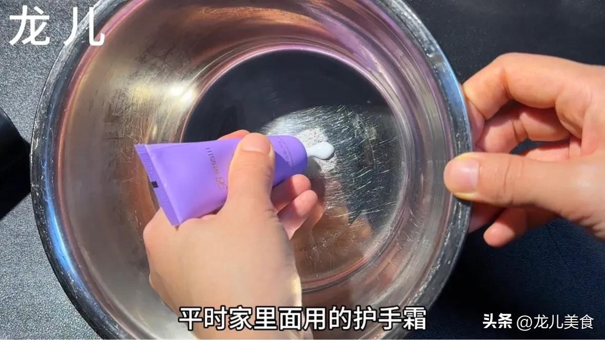 我们只需要取出平时家里面用的护手霜,挤一点在应激的地方,然后用手指轻轻的涂抹涂抹,让所有有残留的地方都被均匀的涂上我们的护手霜。
