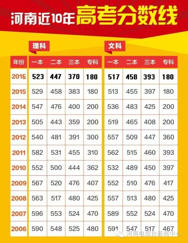 河南历年高考分数