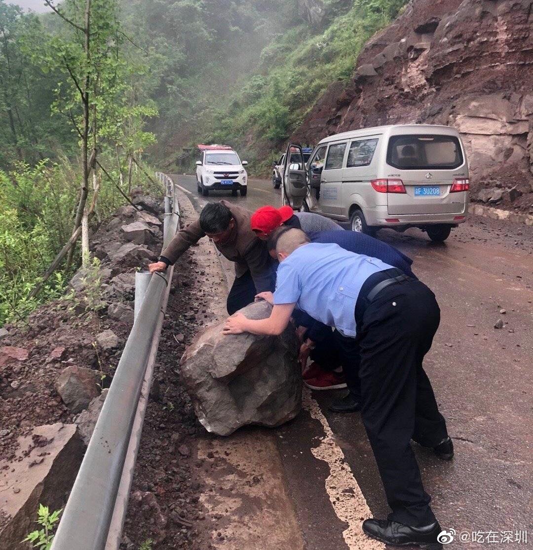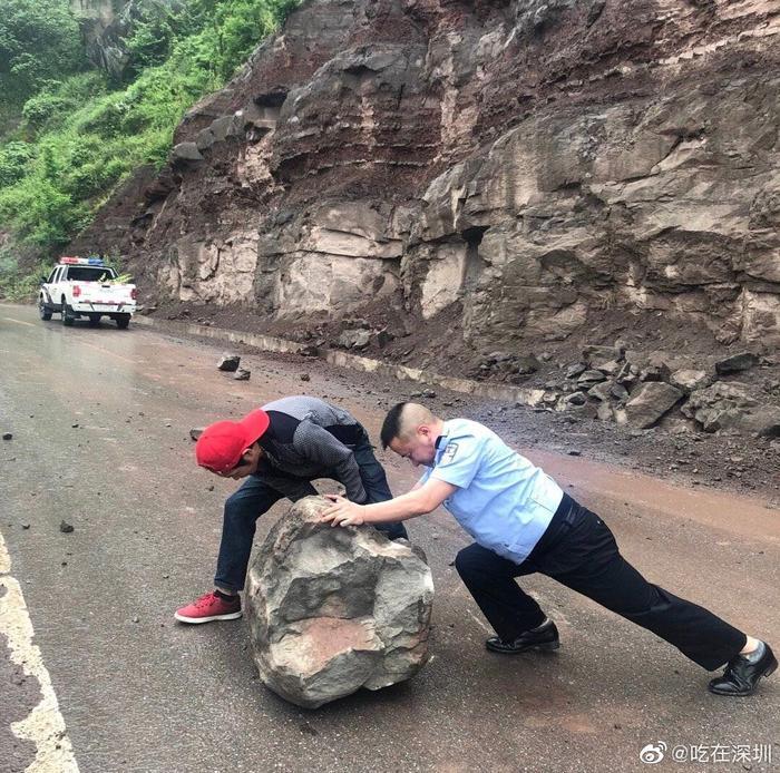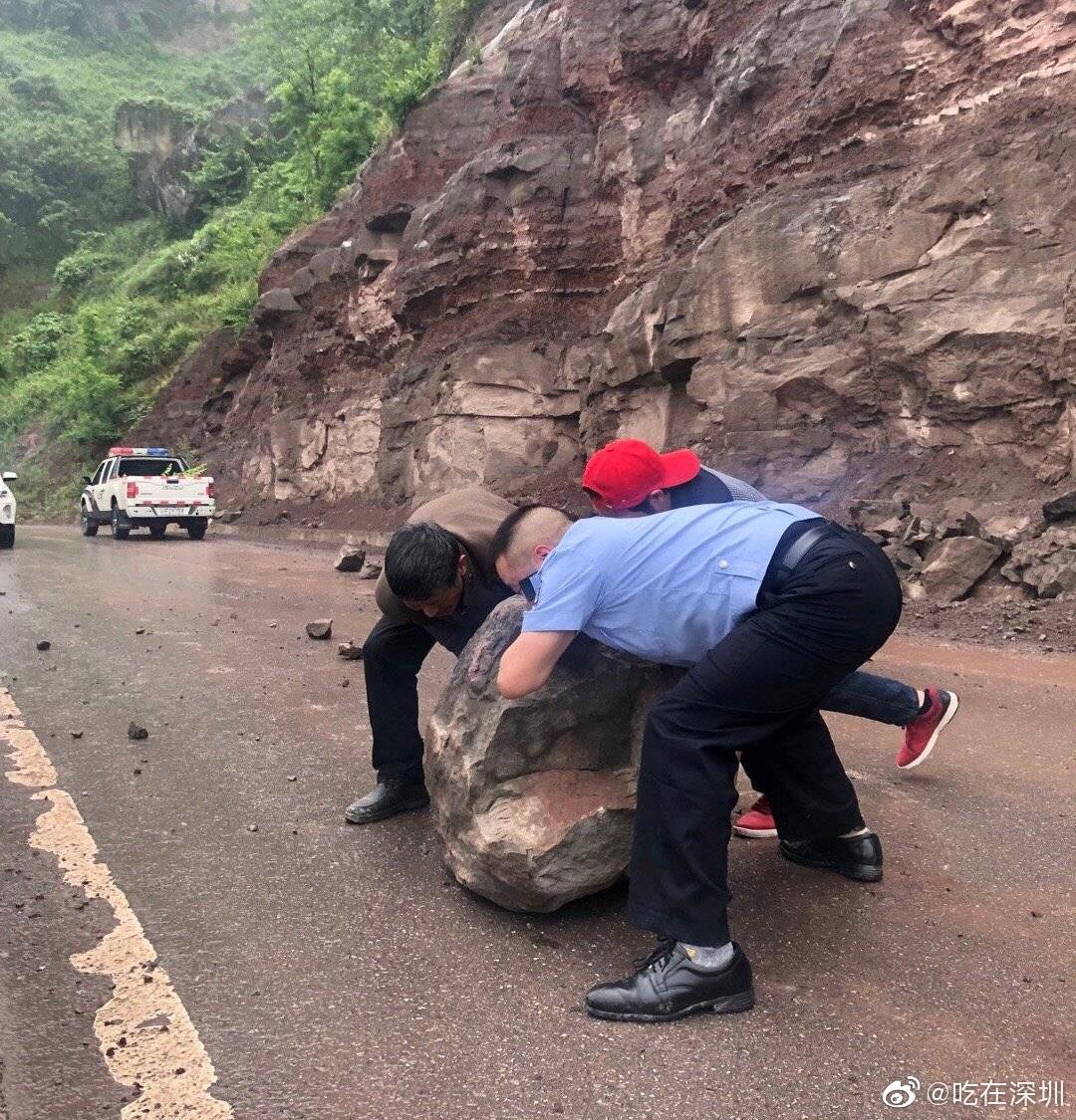 @万州交巡警 :今日下午,万州区公安局交巡警支队机动大队民警在巡逻中发现,龙罗路(龙驹-罗田)部分路段受降雨影响出现落石,民警与群众一起进行了清理,及时排除了安全隐患,道路通行未受影响。交巡警蜀黍提醒大家,雨天行车要注意观察路况,谨慎驾驶,不要山体附近或低洼路段停车滞留,以免发生险情,遇危险路段,要确认安全后行驶,切忌冒险通行。