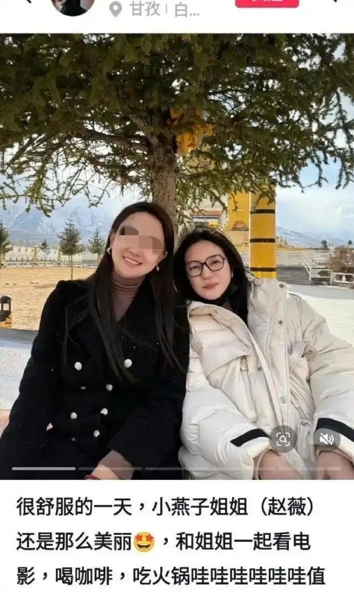 该网友应该是赵薇的好友,配文称很舒服的一天,与小燕子姐姐一起看电影,喝咖啡,吃火锅哇哇哇值了,情人节快乐!