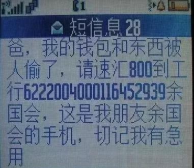7、“儿子”称钱包被偷骗汇款;