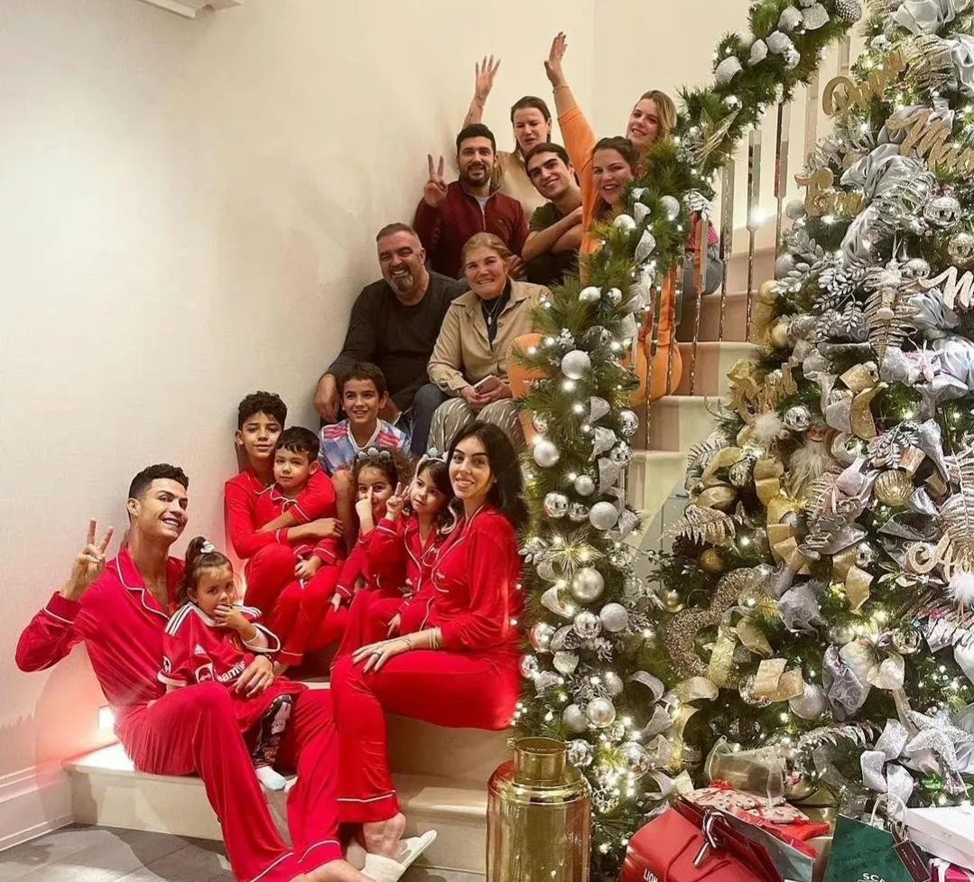C罗和五个孩子以及家人的全家福大合照。