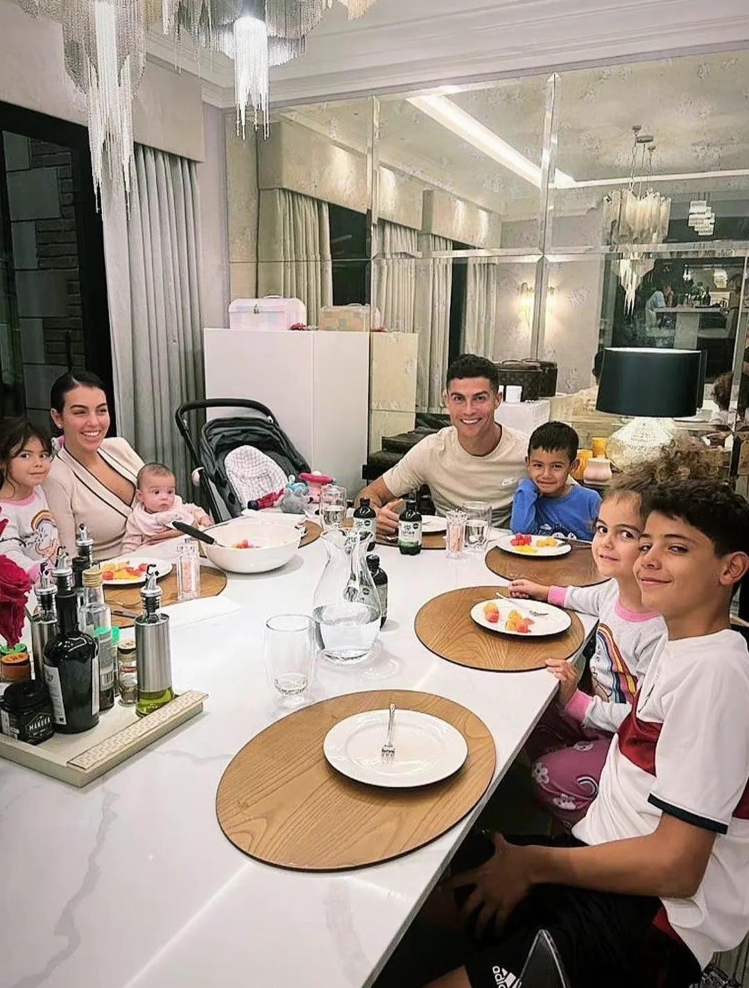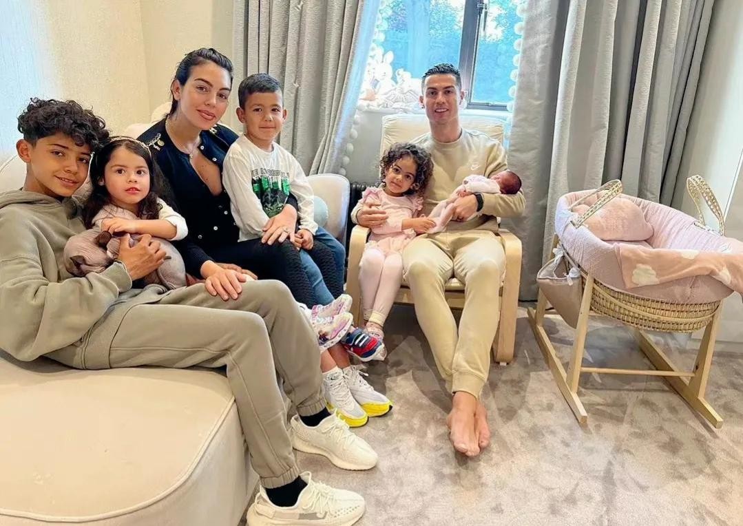 乔治娜·罗德里格斯跟C罗在一起时,C罗已经有了三个孩子,二个儿子和一个女儿,加上乔治娜自己生的两个女儿,他们一共有5个孩子,一家人非常的幸福快乐!