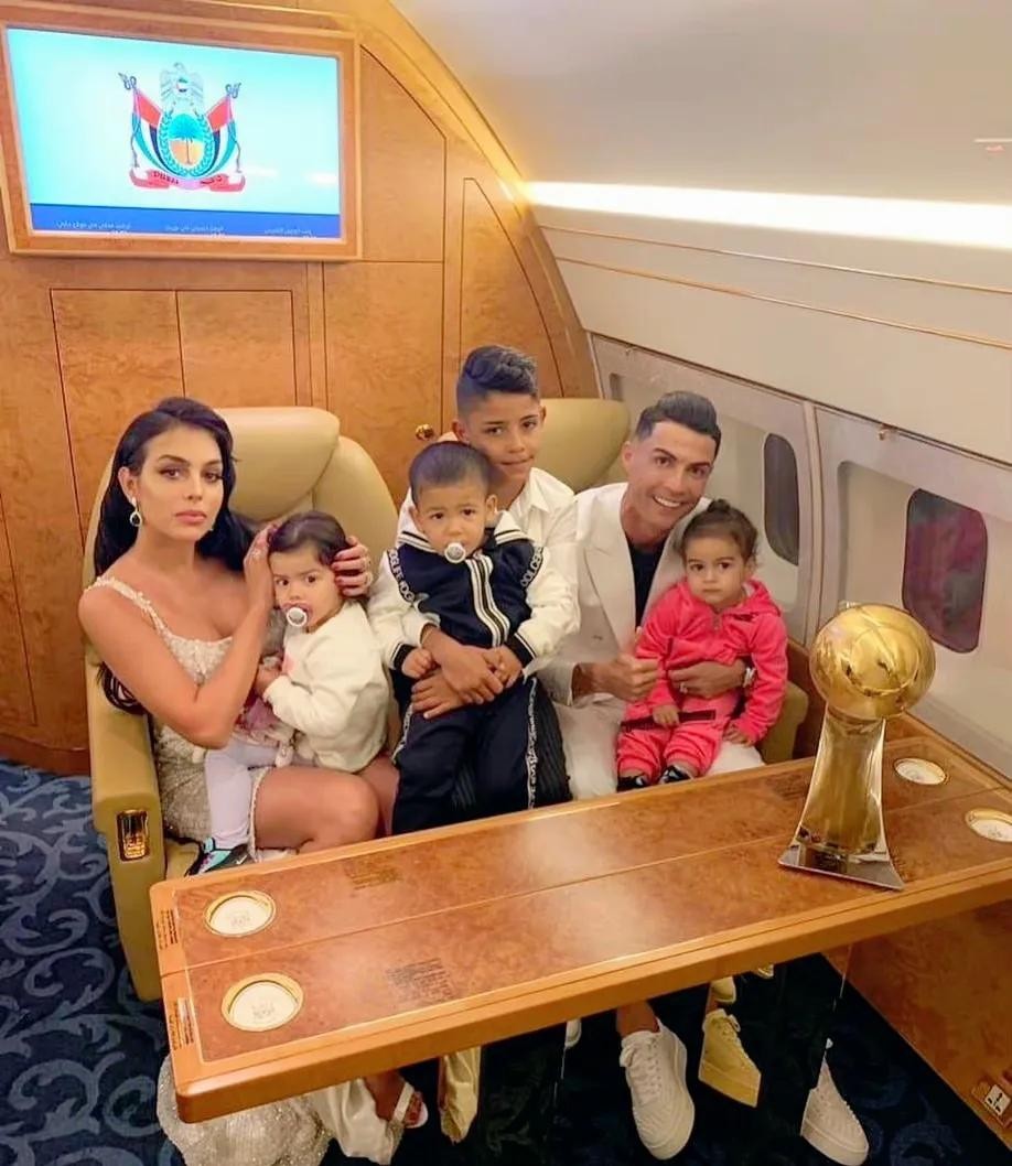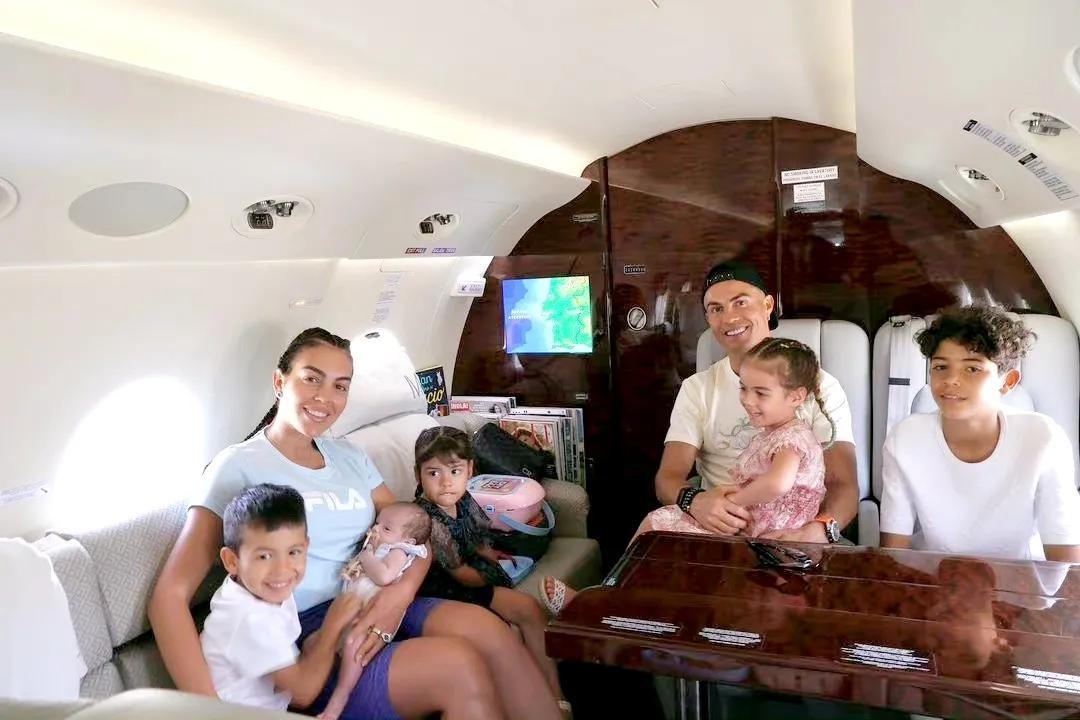 C罗一家七口人在自己的豪华飞机上,小女儿刚刚出生不久,就带着到处飞,这样的生活后享受。