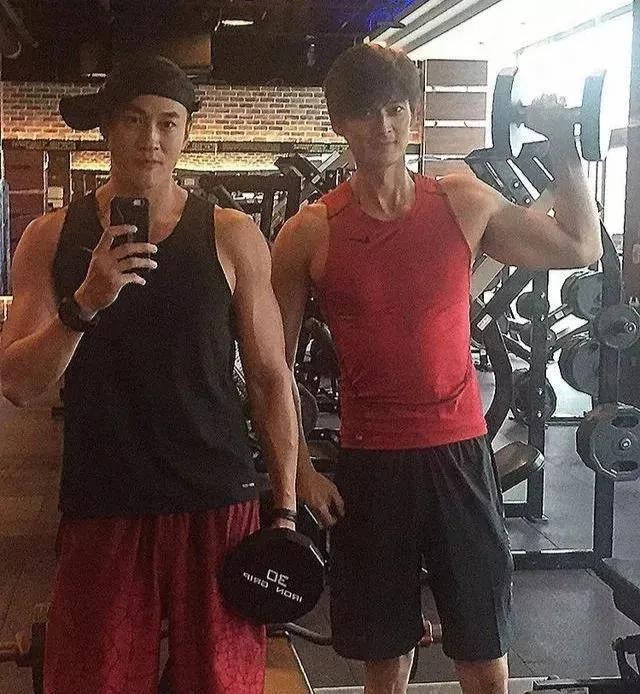 隔三差五还会约上好友郭品超一起虐肌肉,来一场型男之间的较量;