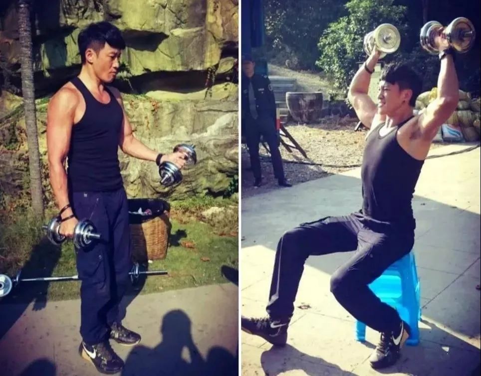 拍戏时还会随身携带器械,把剧组变成健身房;只要是拍戏间隙就会练一练,以便让肌肉随时处于充血饱满的状态。