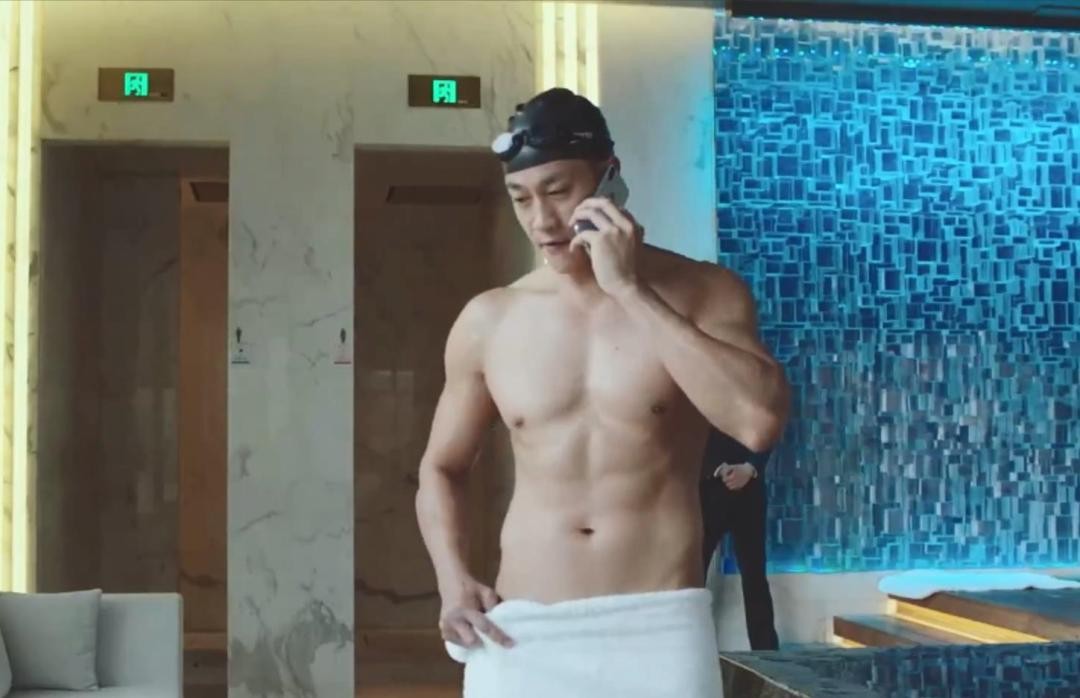 他裹着浴巾、赤裸着健硕的上半身,迈着矫健的步伐走下台阶,我想观众们看到这美好肉体,完全想象不到他已经46岁了吧。