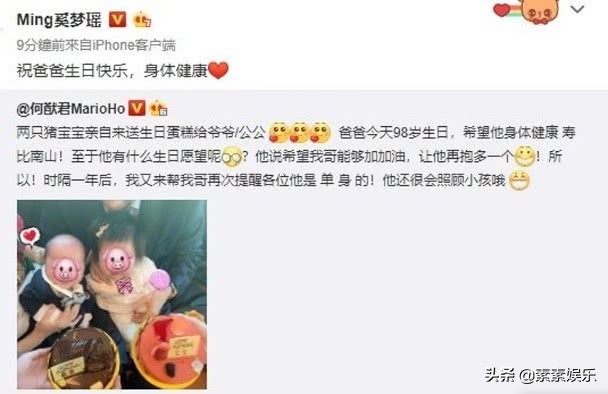 的确就如四太所说的一样,儿子何猷君在媒体上也是发文祝福爸爸生日快乐,身体健康。还不忘记喊话自己的兄弟们,声称爸爸最希望的就是每一年都有新孙子抱,而且希望兄弟们一起加油多生孩子。