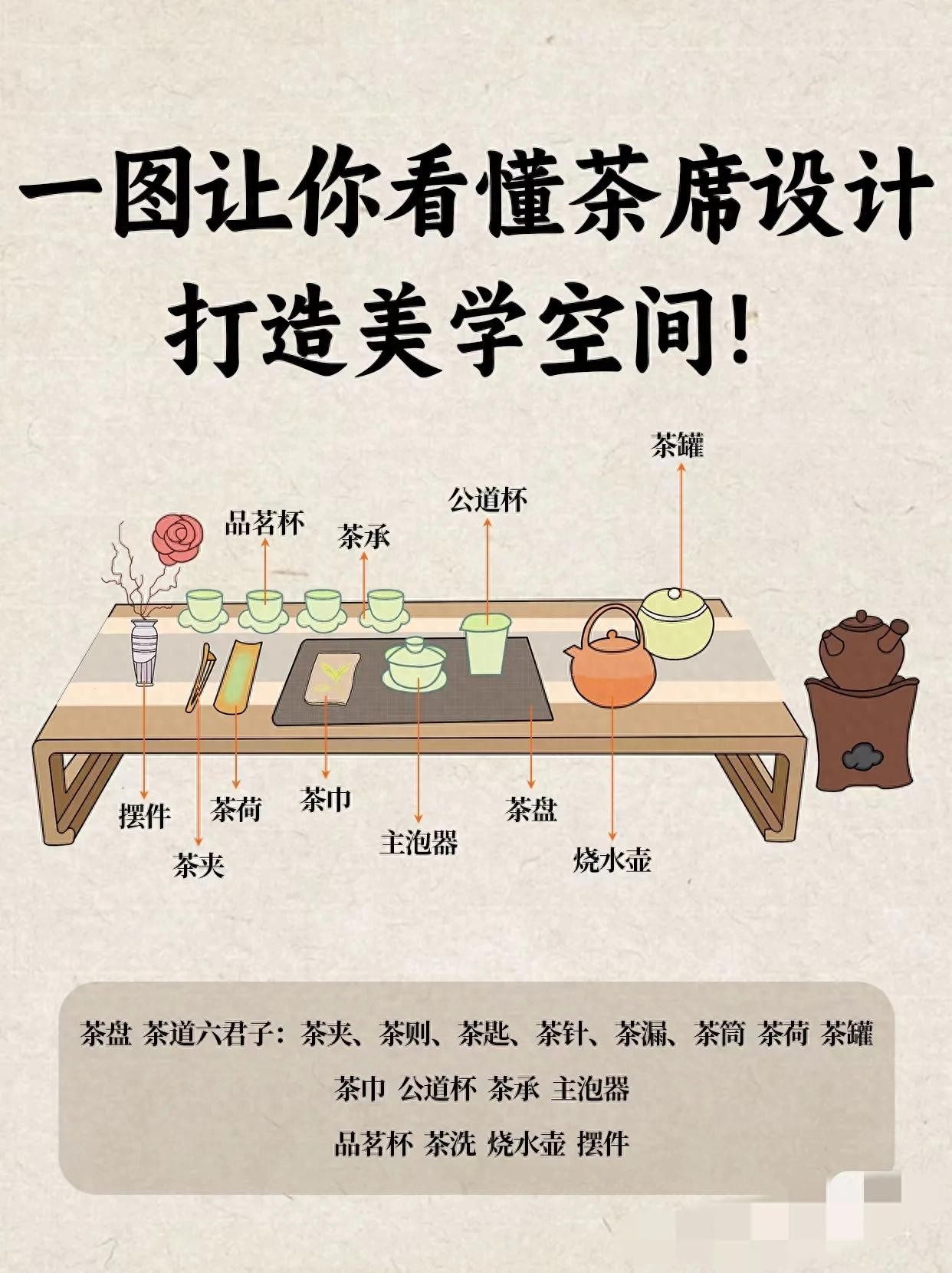 茶道茶席上的6君子,如何摆放,收藏这5张图谱全明了