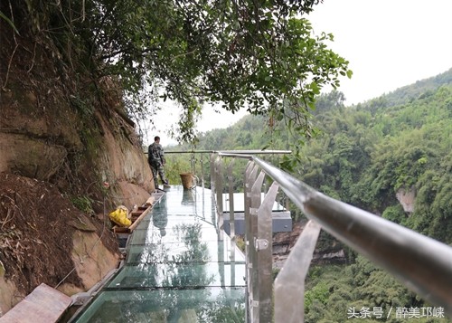 作为成都首座玻璃栈道、悬崖餐厅即将投用前的第一批尝鲜者,记者看到,川西竹海玻璃栈道镶嵌在长达数百米半山腰绝壁上,景区充分利用了峡谷地形,沿绝壁凿路,栈道全长260米,其中玻璃覆盖长度199米。宽1.5米、垂直地面高度近百米,最高处落差约150米。站在玻璃栈道上犹如漫步在空中。目前,主体修建已接近尾声。透过玻璃往下看,千沟万壑尽收眼底,十分险峻,让不少人刚踏上栈道就腿脚打颤,惊叫声不断。