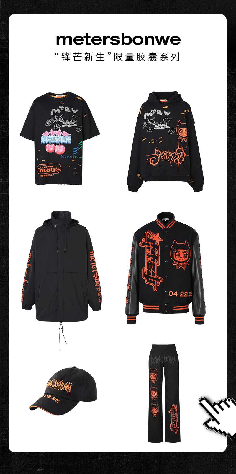 “美特斯邦威”以 metersbonwe 的身份来体现“先锋的新世代精神与态度”,在“新世代不走寻常路的年轻文化”美特斯邦威需要做更多的工作。metersbonwe 会在10月19日举行主题为“锋芒新生”的 2022 春夏系列大秀(位置在上海西岸穹顶艺术中心),这会是品牌诞生以来的首次时装大秀,同时也是全新品牌标识面向大众的正式亮相。这次 metersbonwe 会发售“锋芒新生”限量胶囊系列,系列将通过 6 款单品来开始向大家正式介绍一个全新的 metersbonwe。