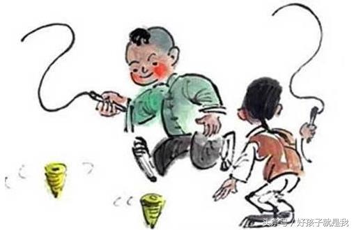 那时候翻看女同学的书包,总能从里面拎出由无数根橡皮筋结成的一根长长的皮筋来,而跳皮筋的花样也是一套套的,一般还都配着童谣,比如“小火车,滴滴滴,马莲开花二十一,二五六,二五七,二八二九三十一...”女孩们三五成群地蹦着跳着,在一根充满韧性和弹性的绳子上变换着无穷的花样。这种游戏的运动量较大,跳、蹦的动作很多,双臂也要顺势摆动,还要保持身体平衡。